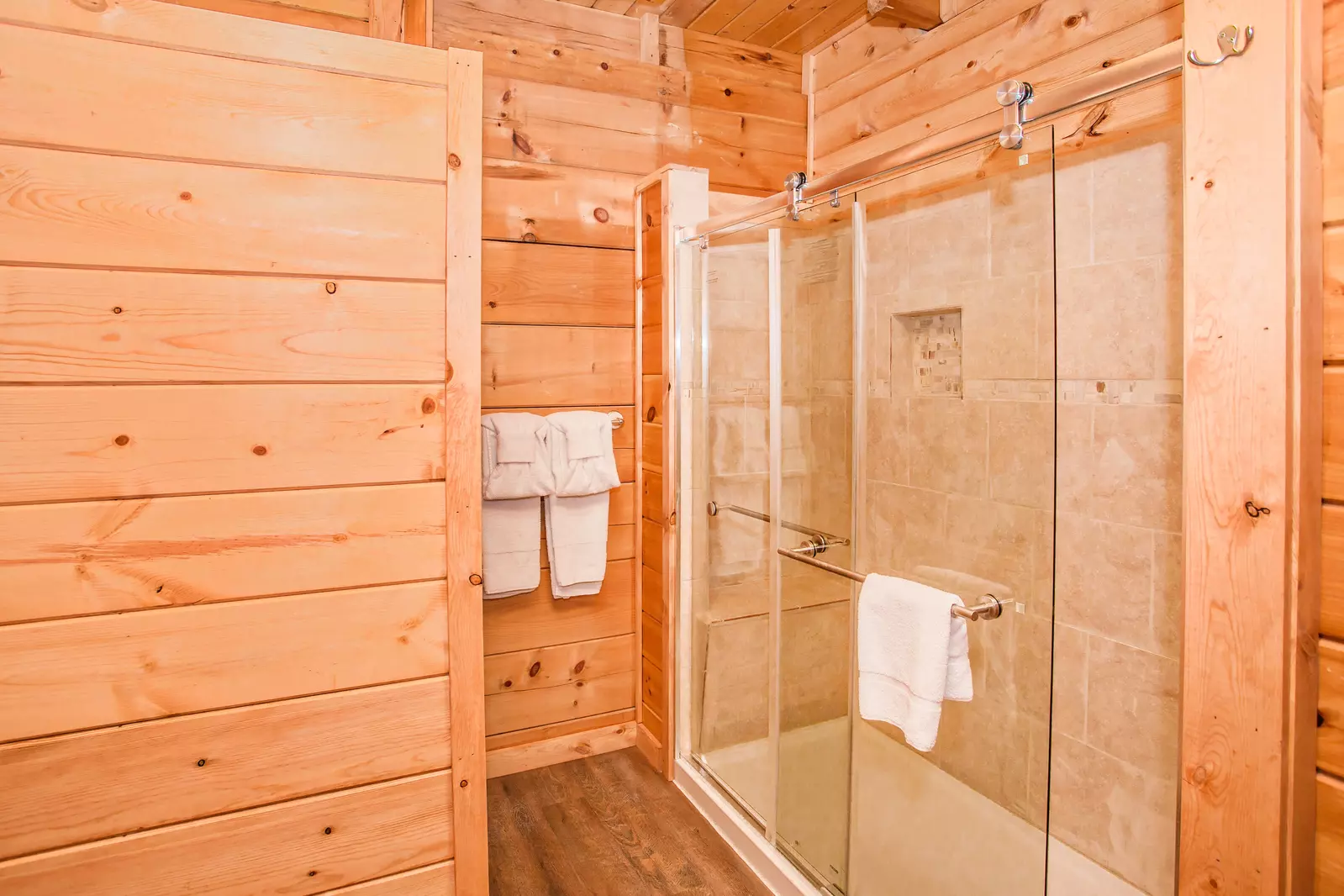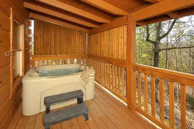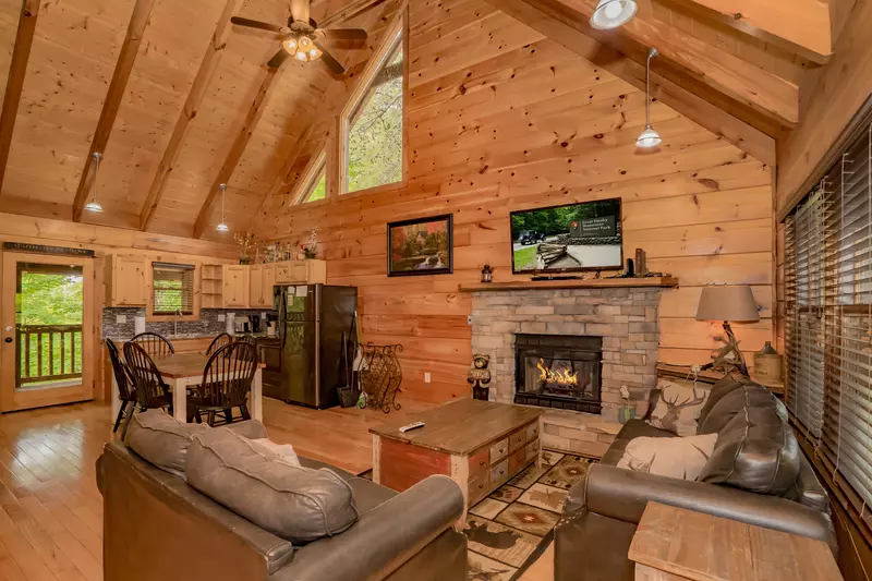 Welcome to Just "A Stone's Throw"! This cabin is close to all the attractions, restaurants and more! This spacious 1722 sqft 3 level cabin features 2 King bedrooms, one bedroom with a bedside Jacuzzi, two sitting areas and additional sleeping to comfortably sleep 8 people. Challenge someone to a friendly game of pool or arcade game. Or take your family outside to enjoy the beautiful scenery while roasting marshmallows around the fire pit. Quietly sip your morning coffee while rocking on the porch swing. Let your muscles relax with a soak in the private hot tub, what is left of your stress will melt away with the serene wooded views. It is truly a wooded paradise that you have to see to believe and with wireless internet you can stay connected with family and friends. This spectacular log cabin is definitely a rental where you will want for nothing with 2 bedrooms, 2 bathrooms and sofa sleepers this lovely cabin can sleep a family or small group comfortably.