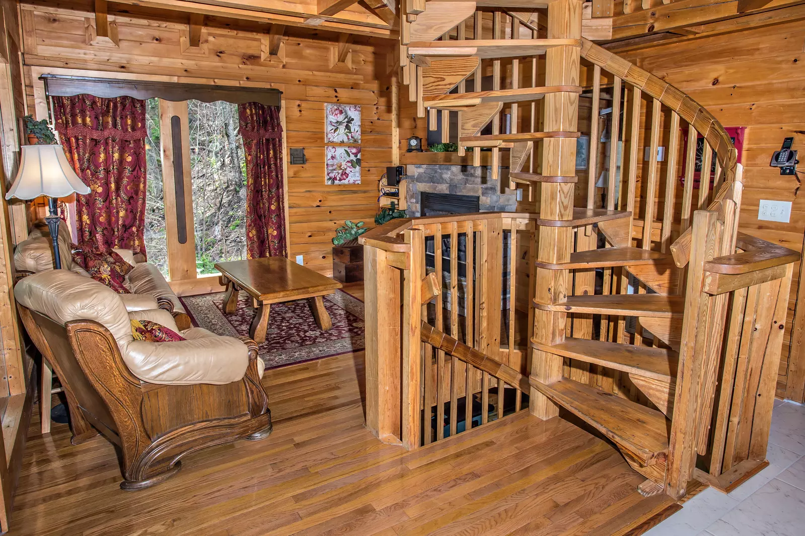 The wrap around deck on this level provides access to the hot tub, and there is no better place to relax, perhaps hearing the soothing sound of the Dollywood train whistle as it echo’s over the mountains.