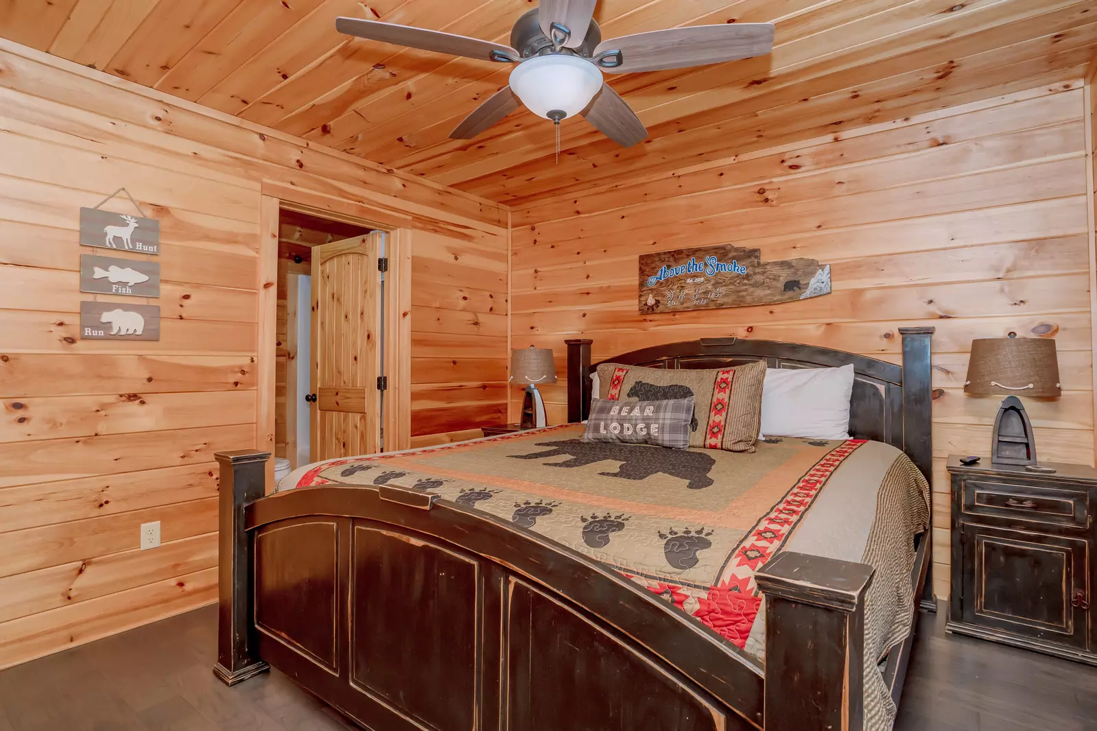 The bedroom on this level features a king bed, large HDTV and a full bathroom with tub/shower.
