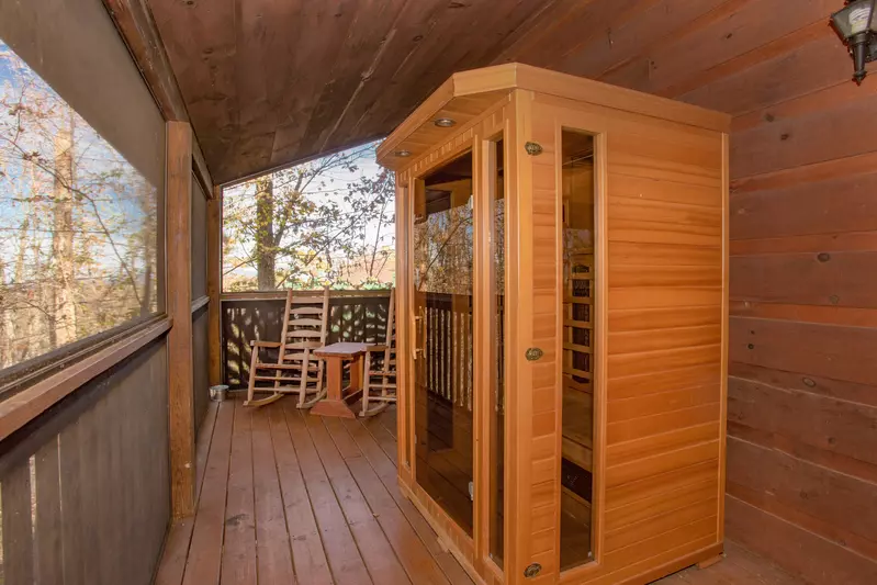 Out on the deck you will find the hot tub perfect for relaxing after a day of fun in the Smokies. A 2 person sauna with mood lights and a radio can also be found on the screened in porch. Complimentary WIFI is also available throughout this beautiful cabin. This is the perfect log cabin for your family's next Smoky Mountain vacation!