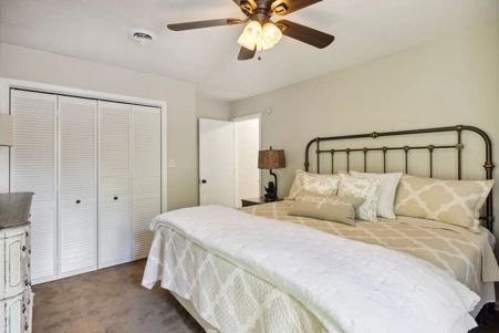 There are 3 bedrooms: The master suite offers a king bed, HDTV, private deck access, an ensuite full bath with a custom tile shower, and an adjoining laundry closet. The 2 other bedrooms each offers a queen bed, HDTV and share a full bathroom equipped with a jetted tub.