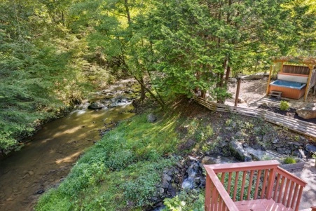 This 2-story cabin offers incredible amenities, such as mountain views, water views, semi-seclusion, pet-friendly, hot tub, wifi, a yard with a gazebo, fire pit and access to 2 creeks, situated on the golf course, and more…