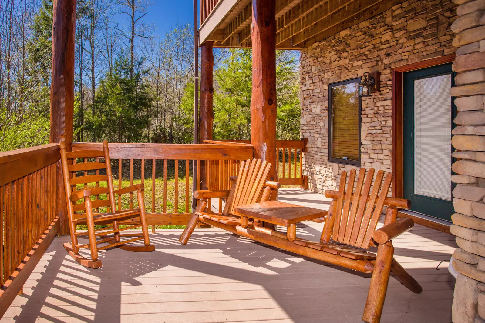 The front porch offers rocking chairs and a porch swing where you can sit and enjoy the quiet time in the mountains.