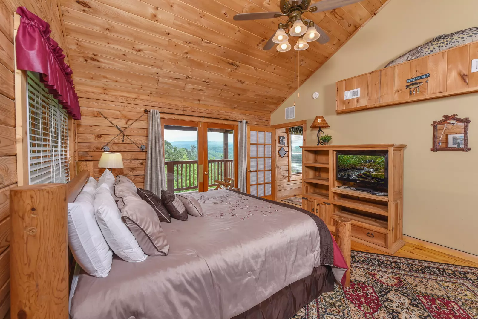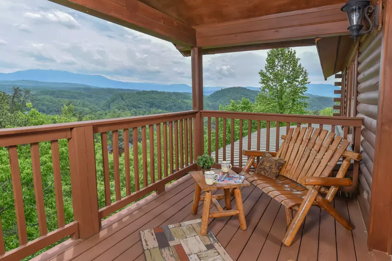 The bedroom has access to a private deck offering a rocker and love seat and an awesome mountain view.