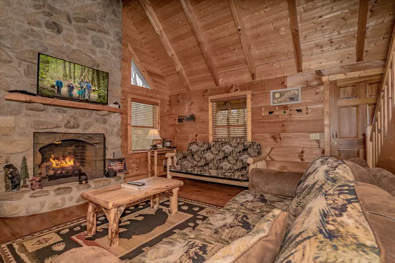 Welcome to Honey Bear Hideaway! The moment you step inside this richly appointed log home, you know this is the height of indulgence. Offering serene wooded views, 1248 sqft, and lots of comfortable elegance, this beautiful 2 bedroom, 2 bathroom cabin that comfortably sleeps 4 is the perfect place to base your getaway to the mountains. Begin your journey to relaxation with the fire place to warm the chilly mountain air or watch the stars twinkle while soaking in the private hot tub located on the expansive porch. Kick your feet up to watch the game and enjoy the flat screen televisions throughout the cabin. Challenge one another to a game of pool while the scenery take your cares away. This two bedroom cabin has all you'll need for a quiet getaway!