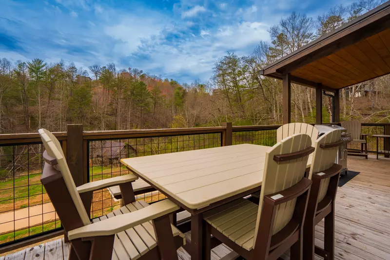Step out onto the spacious deck, relax in one of the rockers, have a cook-out on the gas grill and enjoy the meal at the outdoor table with chairs.