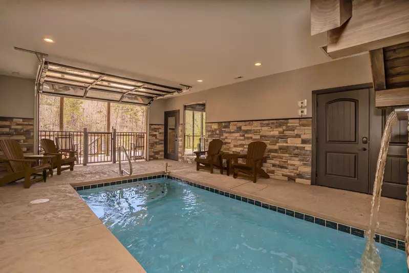 Just off the game area, you will find the theater room and indoor pool room.