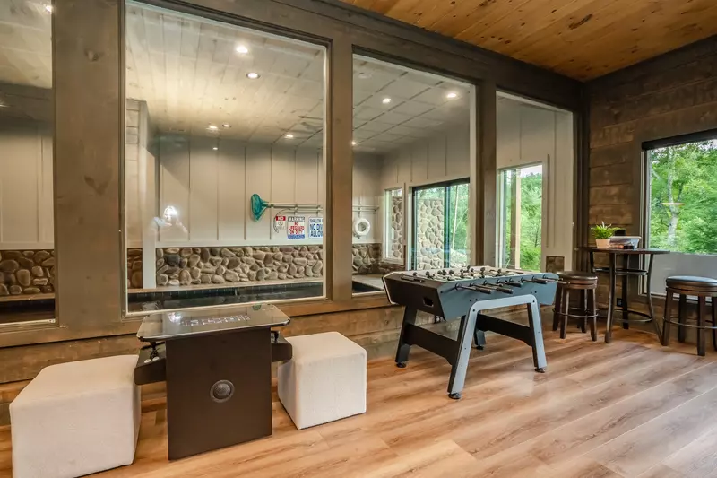 Welcome to Modern Mountain Majesty! Located in the prestigious Cedar Falls Resort is this 5,000 sqft, beautiful modern-rustic home with 3 master suite bedrooms plus loft bunk-bedroom, 4.5 bathrooms and sits on a private piece of land with partial mountain views. This 3-story spacious cabin offers every luxury and caters to the discerning traveler seeking a unique and luxurious vacation experience in The Great Smoky Mountains. The cabin offers a heated indoor pool, mountain views, seclusion, theater room, game room, hot tub, wifi throughout the cabin and is perfect for a small family or couples retreat.