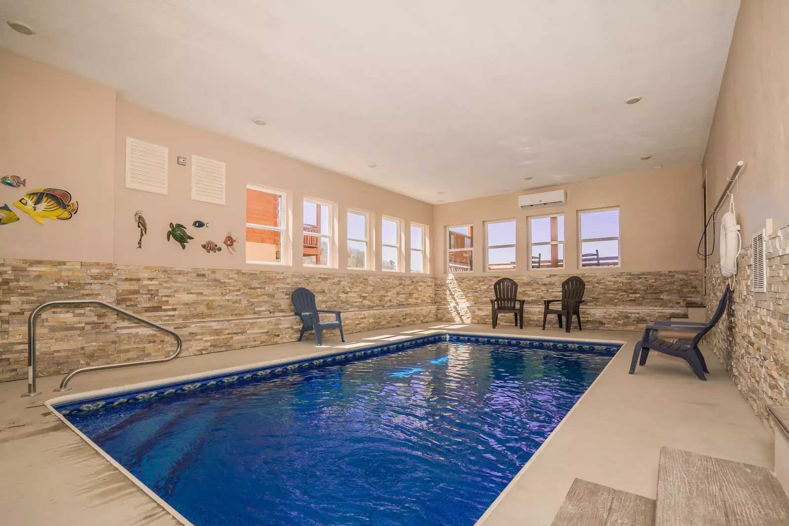 Welcome to Poolside Cinema Lodge! This is a luxurious 3-story retreat designed for unforgettable mountain getaways. This spacious 4794 sqft cabin features 6 bedrooms and 6.5 bathrooms, offering plenty of room for families or groups to relax, unwind and have a good time. Enjoy resort-style amenities including a private indoor pool, a fully equipped movie room, a fun filled game room and multiple decks showcasing scenic mountain views. After a day of exploring, soak in the hot tub under the stars and let the serenity of the Smokies surround you. Poolside Cinema Lodge is your perfect blend of comfort, entertainment, and breathtaking beauty.