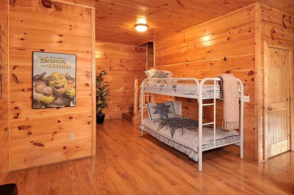 Extra sleeping is provided by a twin bunk bed in the game room.