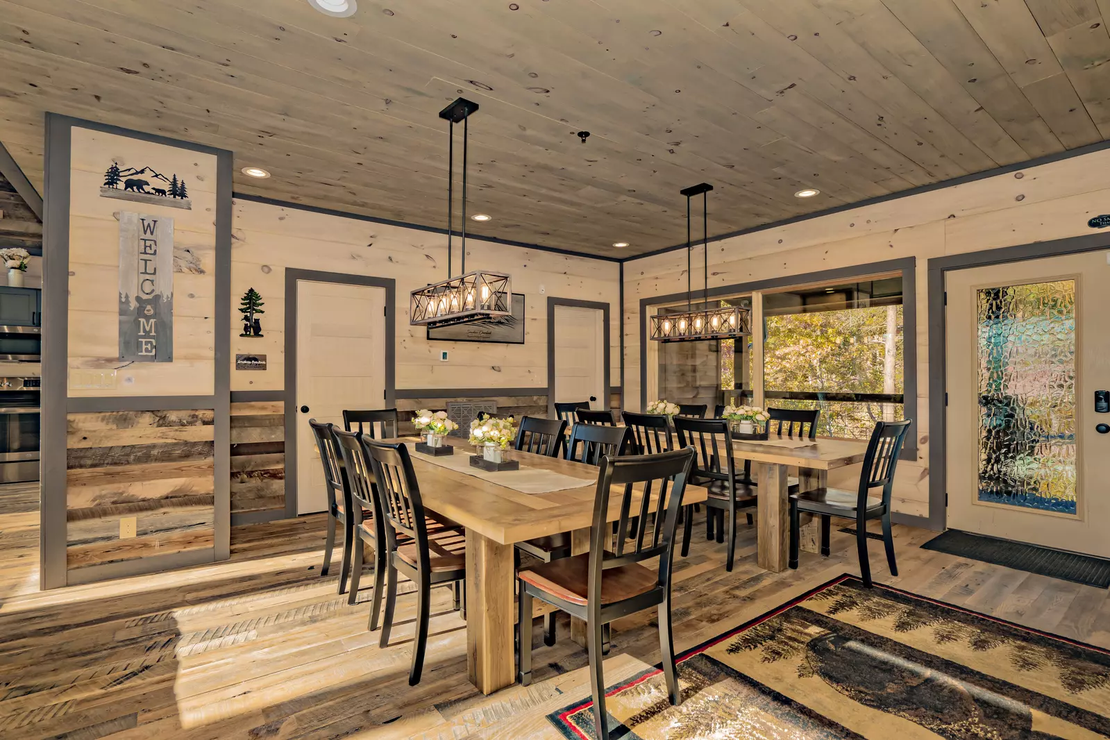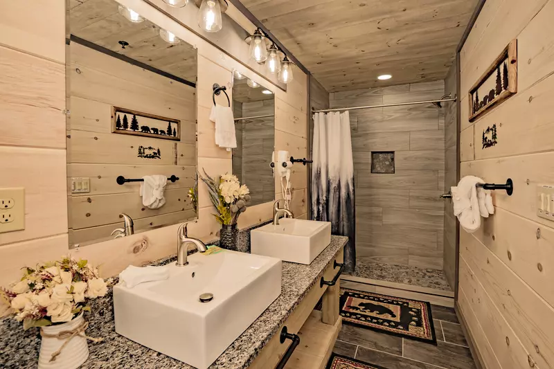 Welcome to Smokies Overlook! Located in Pigeon Forge and only 5 miles from The Island and other major attractions is this 4,500 sqft, brand new built, modern-mountain manor sitting on a private piece of land with amazing views of the Smoky Mountains. This 3-story spacious cabin offers every luxury and caters to the discerning traveler seeking a unique and luxurious vacation experience in The Great Smoky Mountains. You will soon notice all the detail throughout this beautiful cabin. The floors are original 100+ year old oak barn wood repurposed from barns across the midwest & southeast and the same barn wood embellishes the walls throughout.